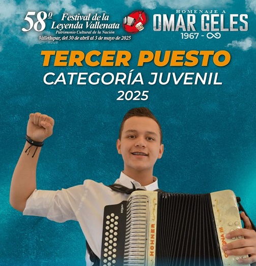 El segundo lugar fue para Samuel Arzuaga Robles, representante de San Diego, Cesar, mientras que el tercer puesto lo obtuvo Santiago Alberto Diez Arévalo, oriundo de